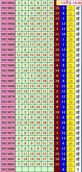双色球2023084期阳光杀蓝汇总图表