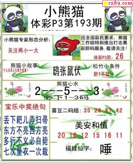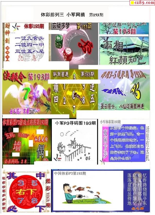 2023年193期牛彩网体彩P3画迷图谜汇总分享