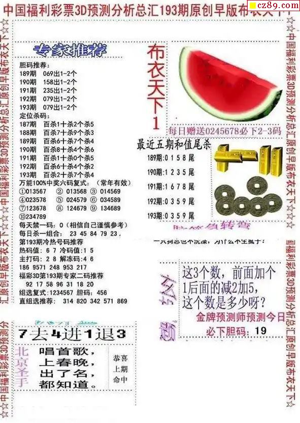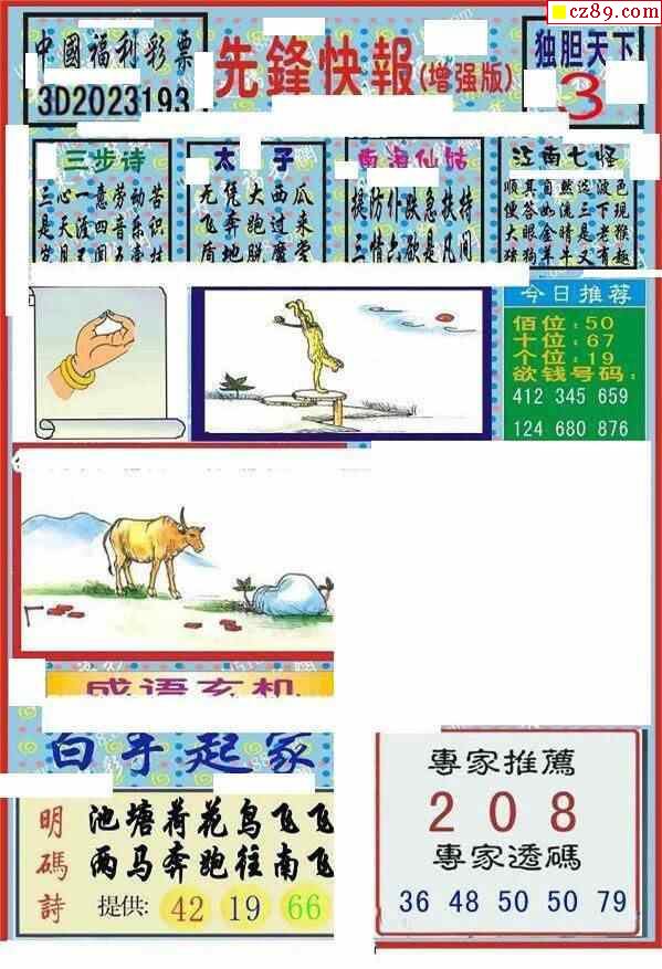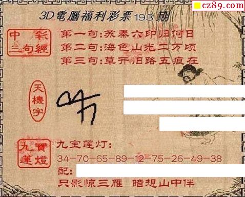 福彩3D2025334期 祁连牧哥百财纳福胆码图谜推荐