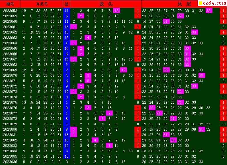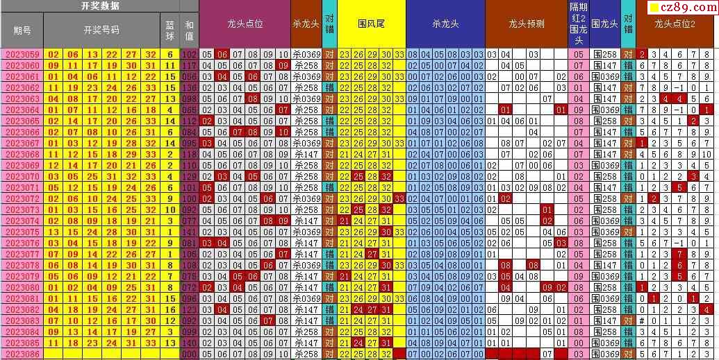 23年086期飞向阳光福彩双色球预测图表汇总