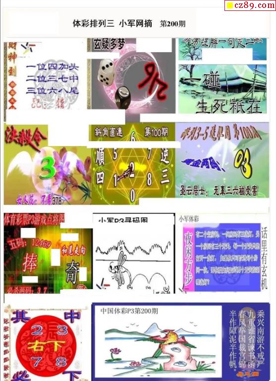 2023年200期牛彩网体彩P3画迷图谜汇总分享