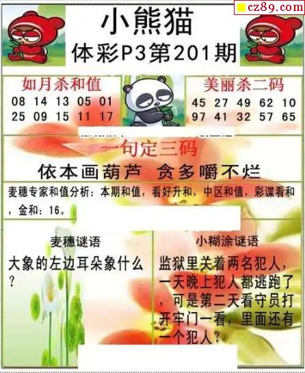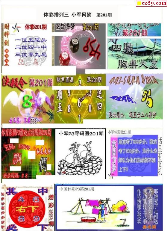 2023年201期牛彩网体彩P3画迷图谜汇总分享