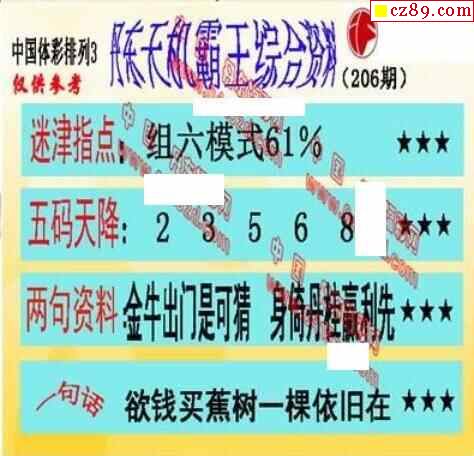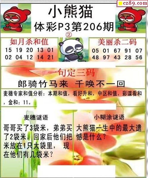 2023年206期牛彩网体彩P3画迷图谜汇总分享