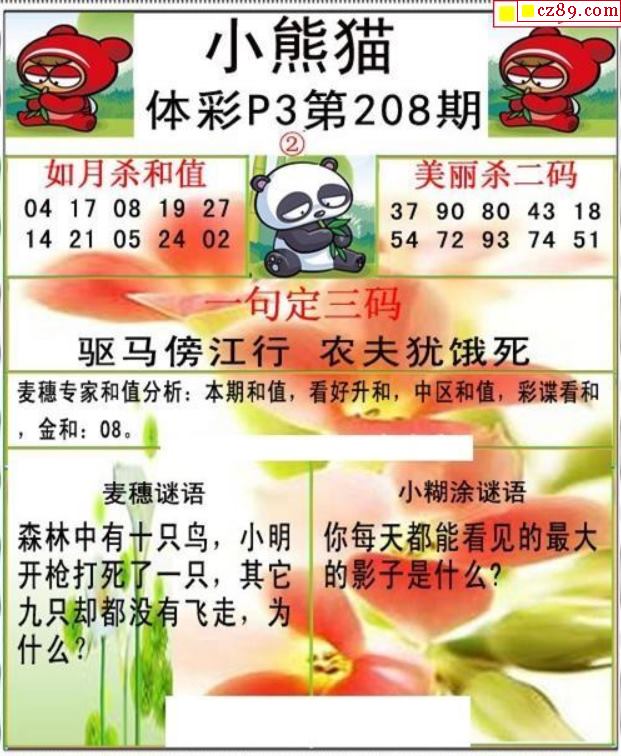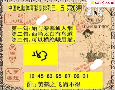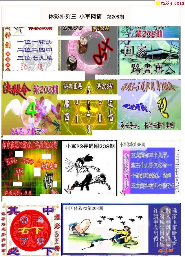 2023年208期牛彩网体彩P3画迷图谜汇总分享