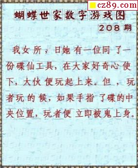 真蝴蝶世家2023208期3d图谜