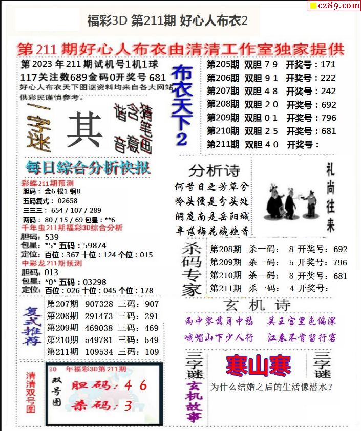 福彩3D2025340期 红尘入世锦鲤吐胆图