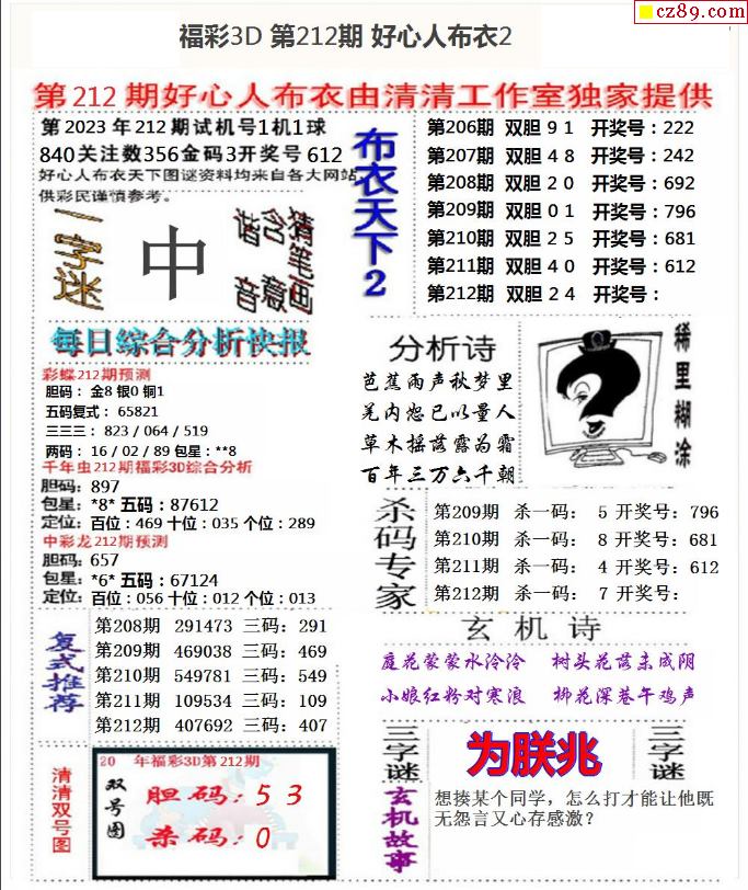 牛彩版3D字谜彩报图25年335期打印版