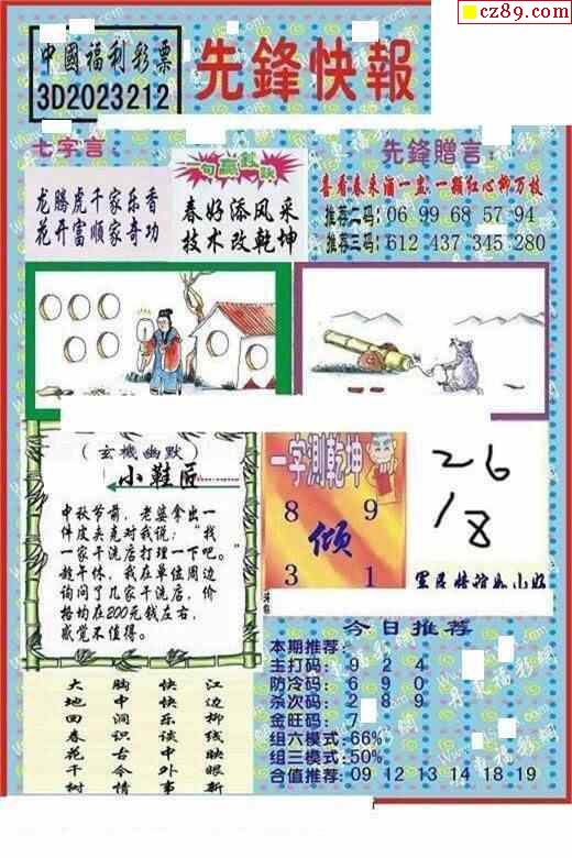 福彩3D2025332期 祁连牧哥百财纳福胆码图谜推荐