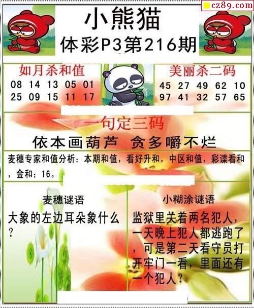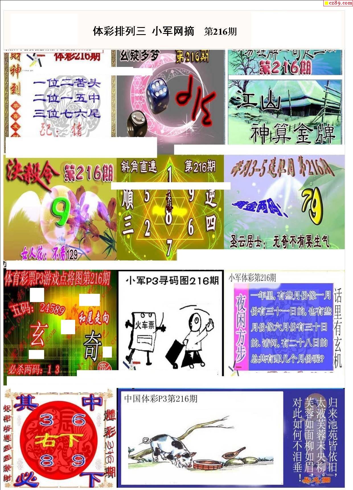 2023年216期牛彩网体彩P3画迷图谜汇总分享