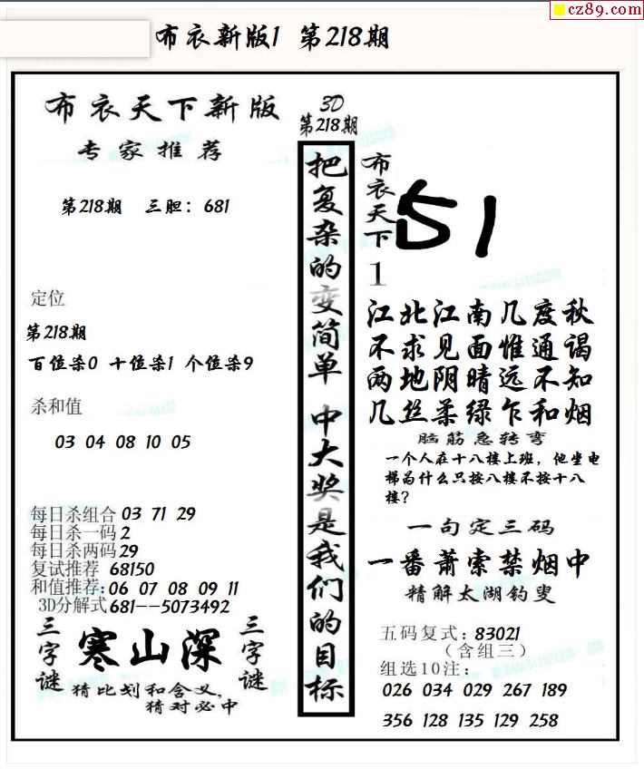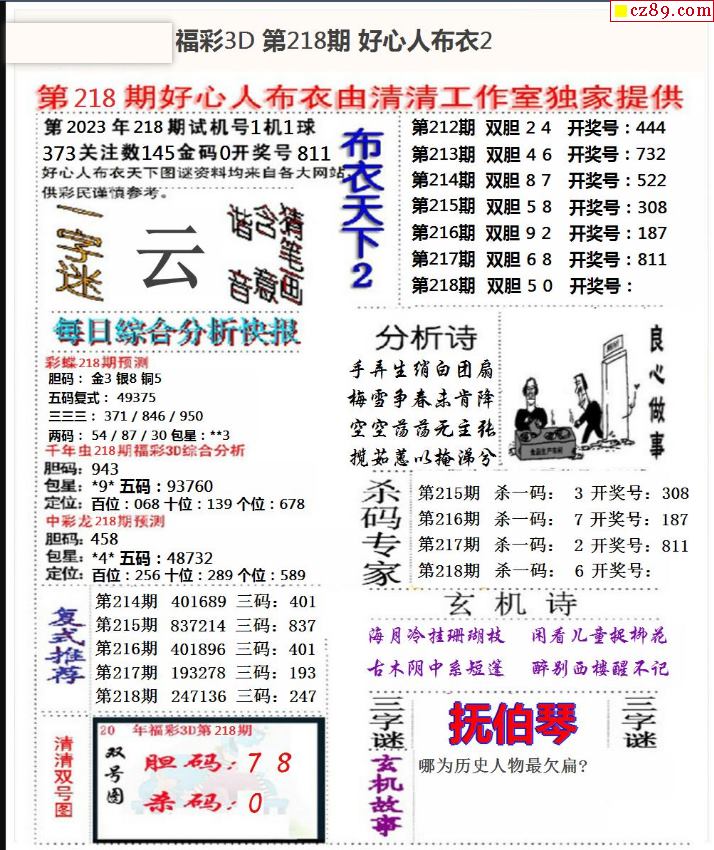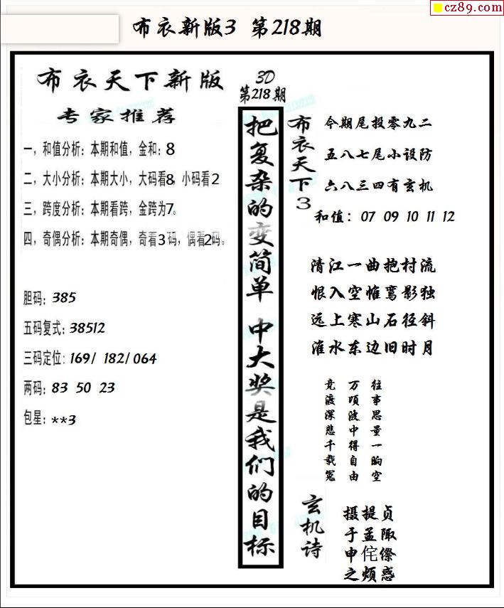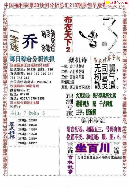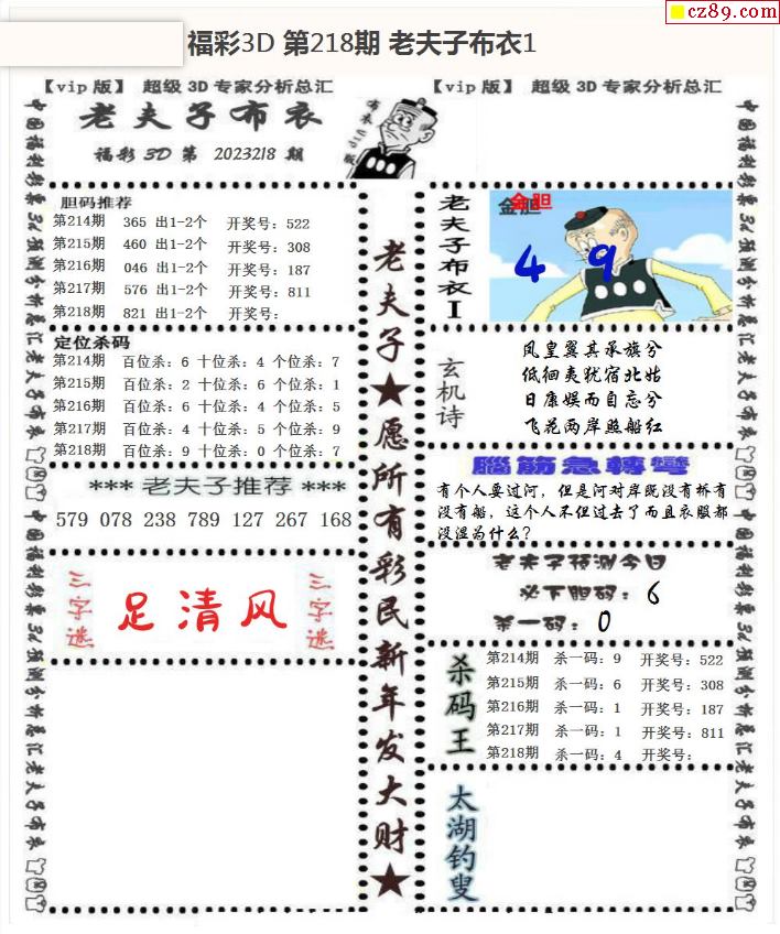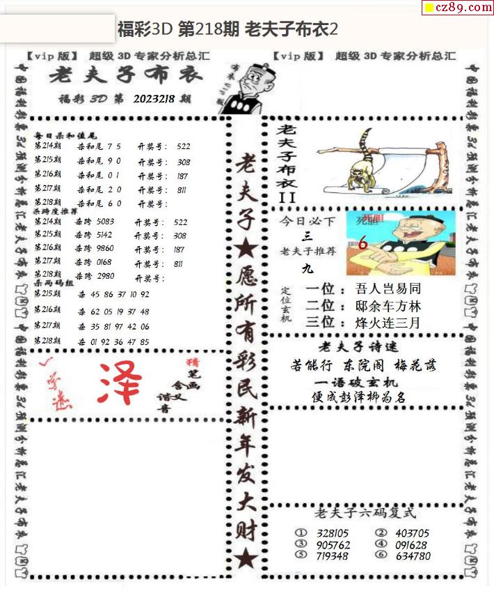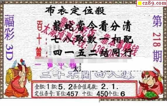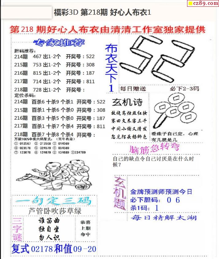 福彩3D2025339期 祁连牧哥百财纳福胆码图谜推荐