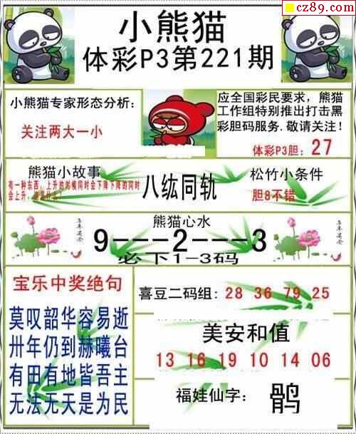 2023年221期牛彩网体彩P3画迷图谜汇总分享