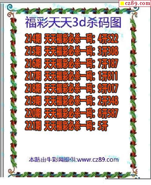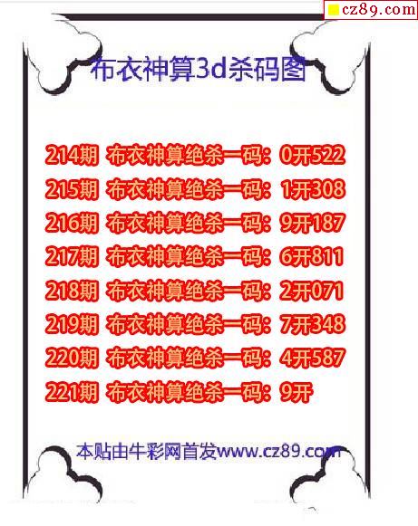 牛彩版3D预测彩报图25年334期打印版