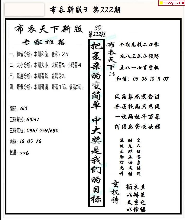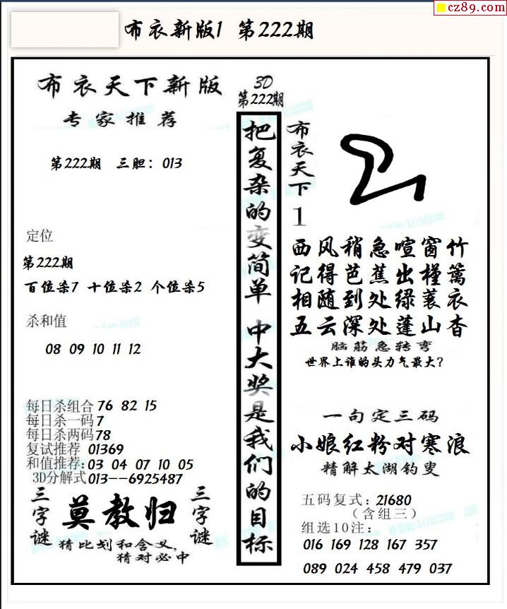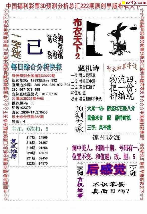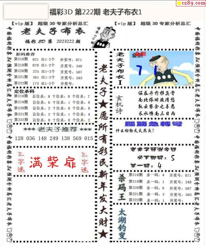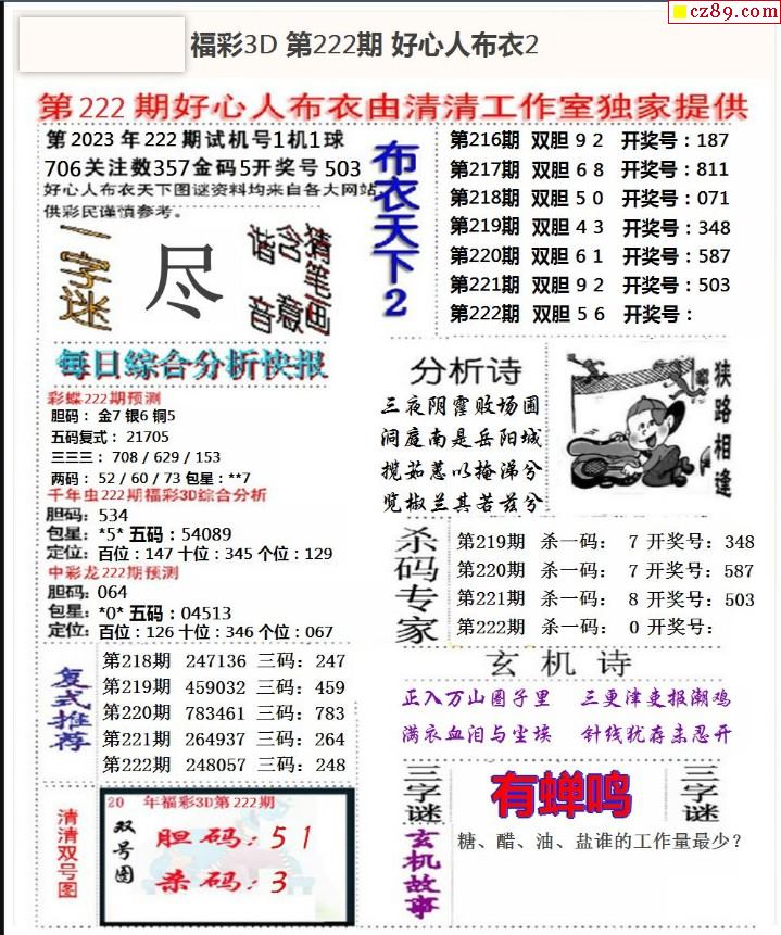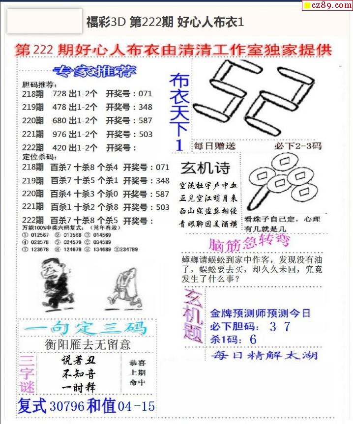 福彩3D2026068期 万家图谜三国胆拖杀图