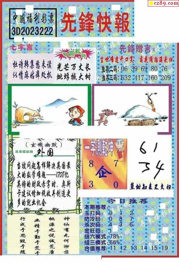 牛彩版3D字谜彩报图25年337期打印版