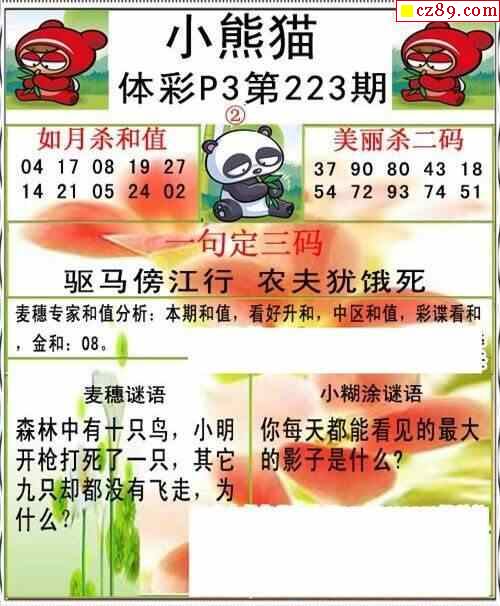 2023年223期牛彩网体彩P3画迷图谜汇总分享