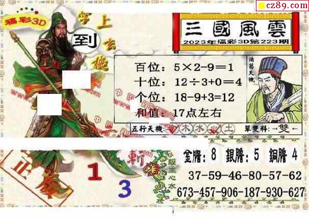 福彩3D2025332期 万家图谜三国胆拖杀图