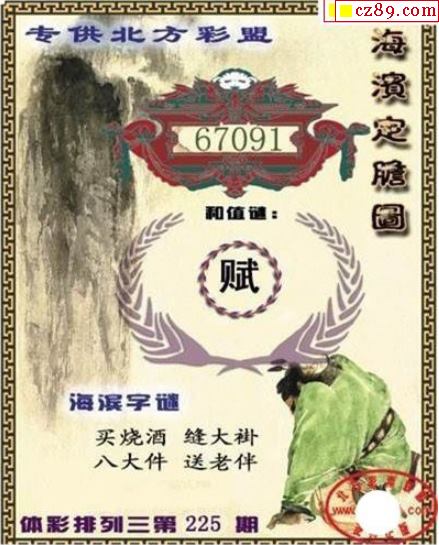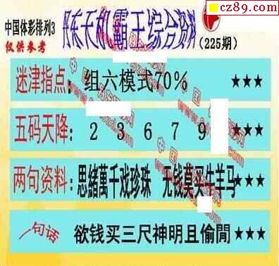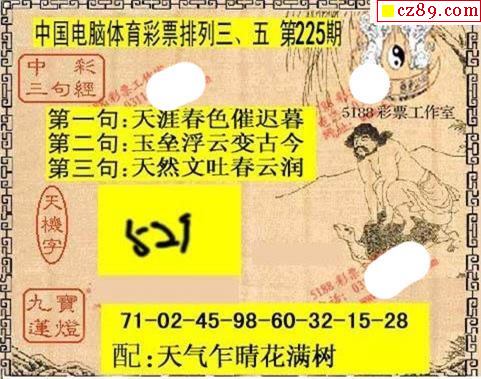 2023年225期牛彩网体彩P3画迷图谜汇总分享