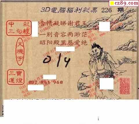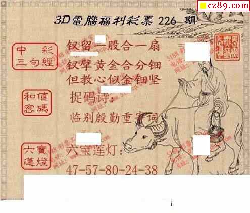 福彩3D2025331期彩赌侠一句定三码字图谜