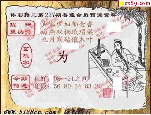 2023年227期牛彩网体彩P3画迷图谜汇总分享