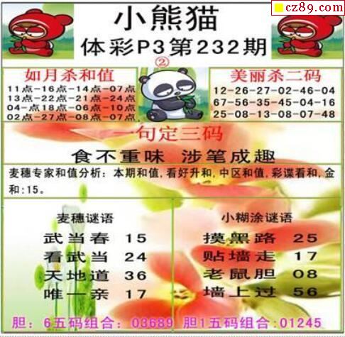 2023年232期牛彩网体彩P3画迷图谜汇总分享