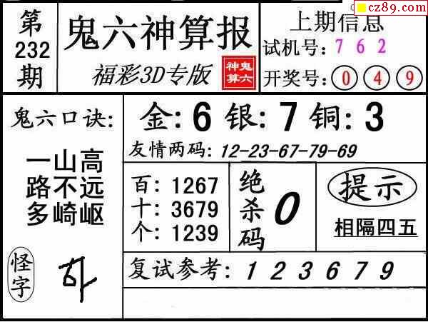 福彩3D2025332期 山上的羊飞鸟胆码图