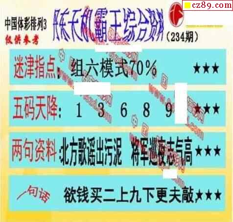 2023年234期牛彩网体彩P3画迷图谜汇总分享