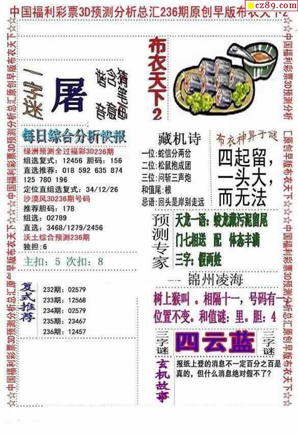 2023236期3d图谜汇总(五)