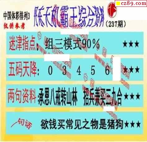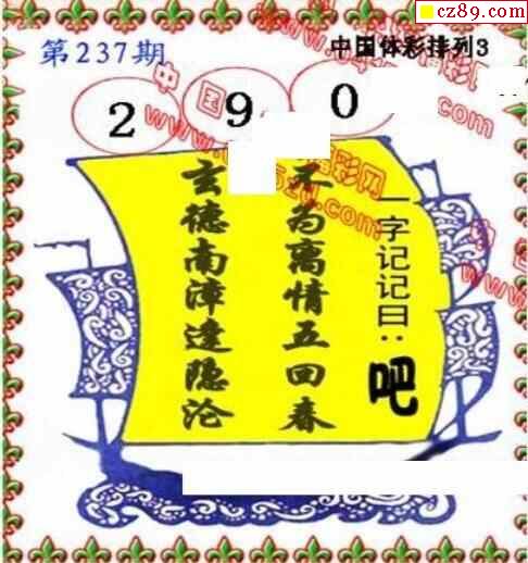 2023年237期牛彩网体彩P3画迷图谜汇总分享
