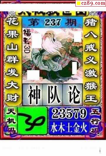五福财星三胆2025332期3d图谜(原创)
