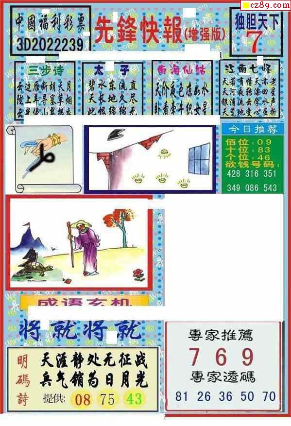 牛彩版3D字谜彩报图25年326期打印版