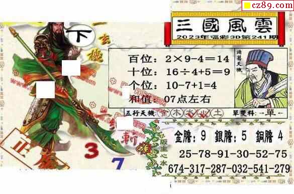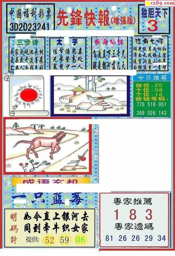 福彩3D2025333期 祁连牧哥百财纳福胆码图谜推荐