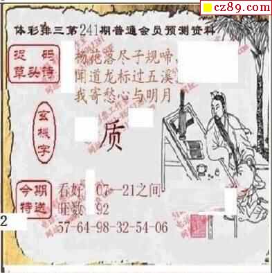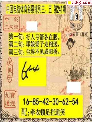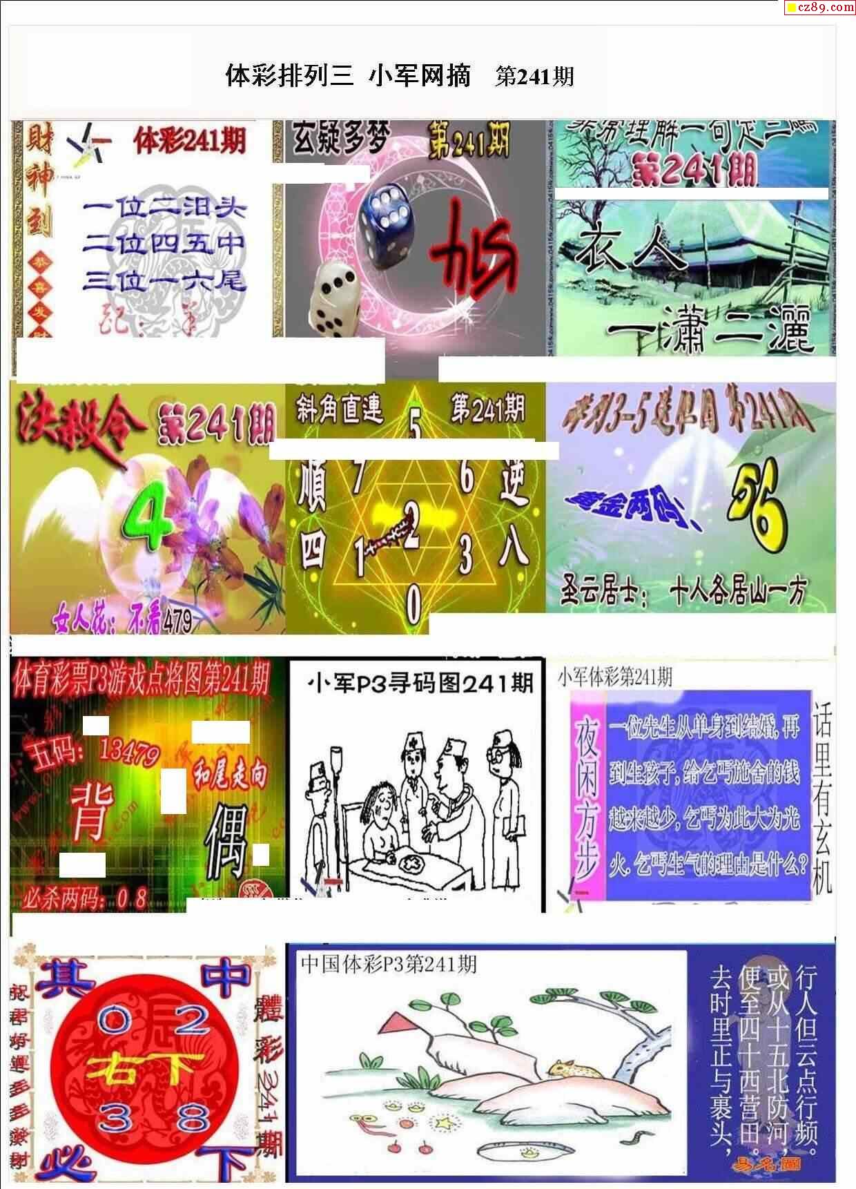 2023年241期牛彩网体彩P3画迷图谜汇总分享
