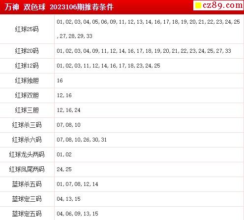 2023年106期 牛彩版双色球专家预测总汇分享
