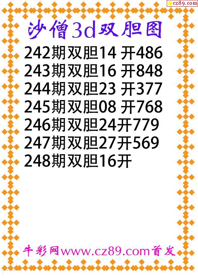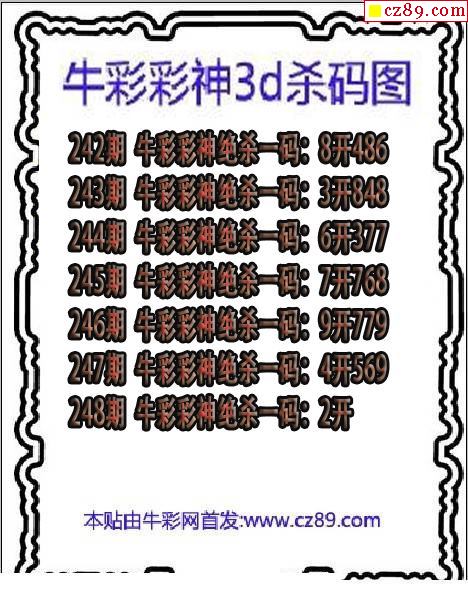 牛彩版3D预测彩报图25年334期打印版
