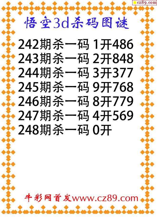 牛彩版3D字谜彩报图25年334期打印版