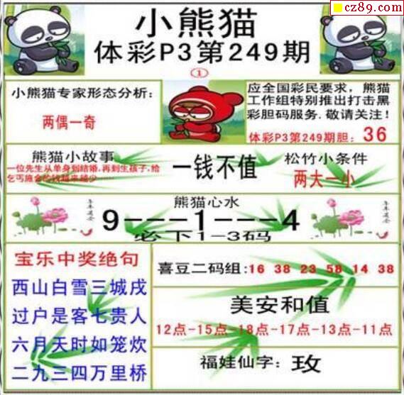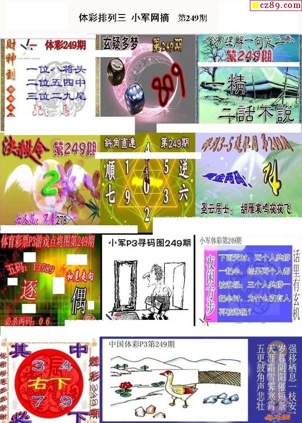2023年249期牛彩网体彩P3画迷图谜汇总分享