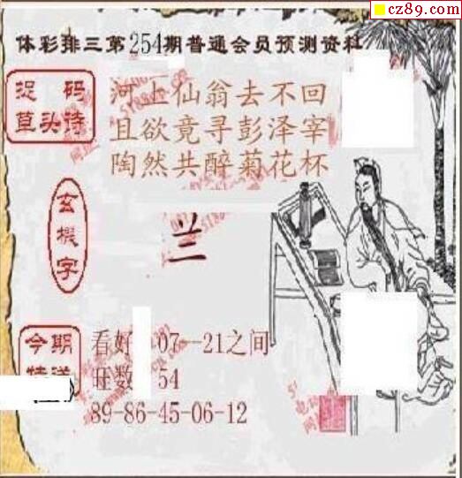 2023年254期牛彩网体彩P3画迷图谜汇总分享