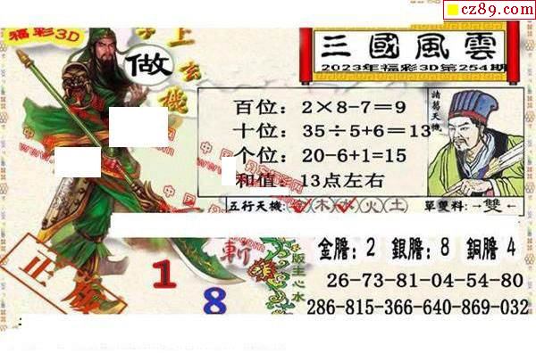 福彩3D2025331期彩赌侠一句定三码字图谜
