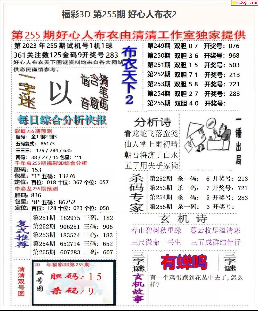 2023255期3d字谜图谜总汇
