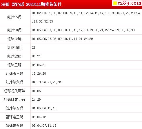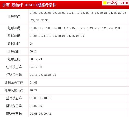 2023年111期 牛彩版双色球专家预测总汇分享