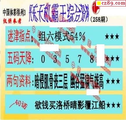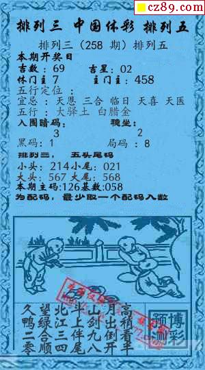 2023年258期牛彩网体彩P3画迷图谜汇总分享