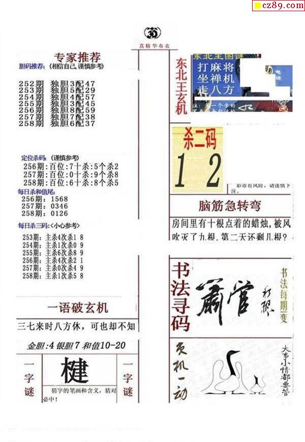 牛彩版3D字谜彩报图25年330期打印版