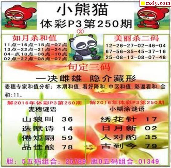 2025329期体彩P3图谜汇总
