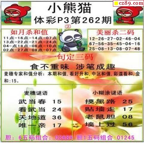 2023年262期牛彩网体彩P3画迷图谜汇总分享