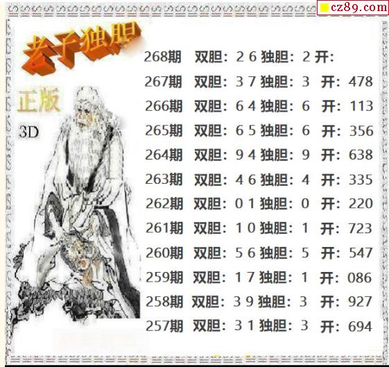 五福财星三胆2025332期3d图谜(原创)