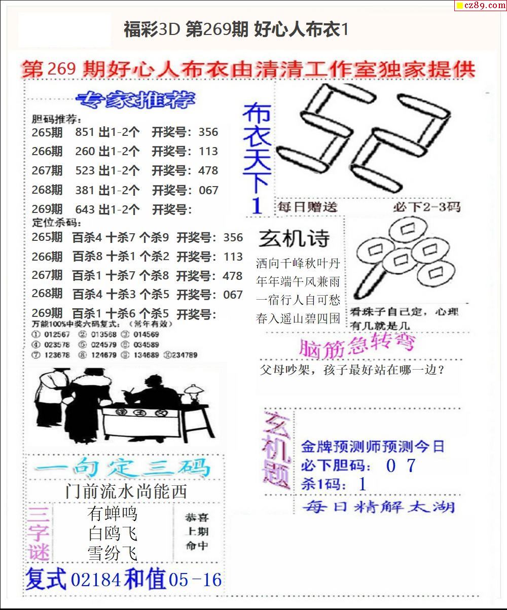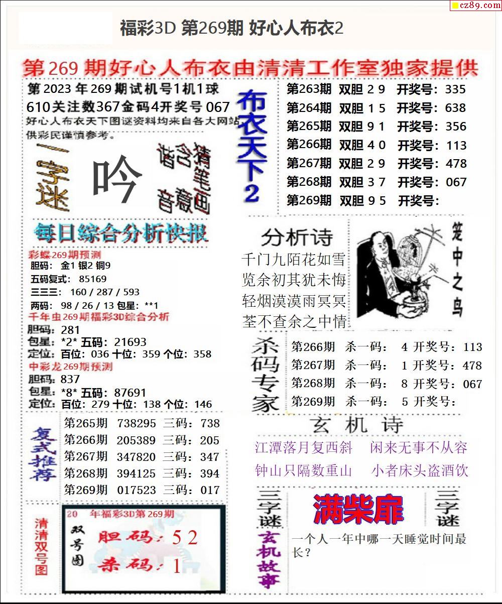 2026067期福彩3D图谜汇总