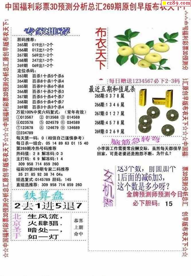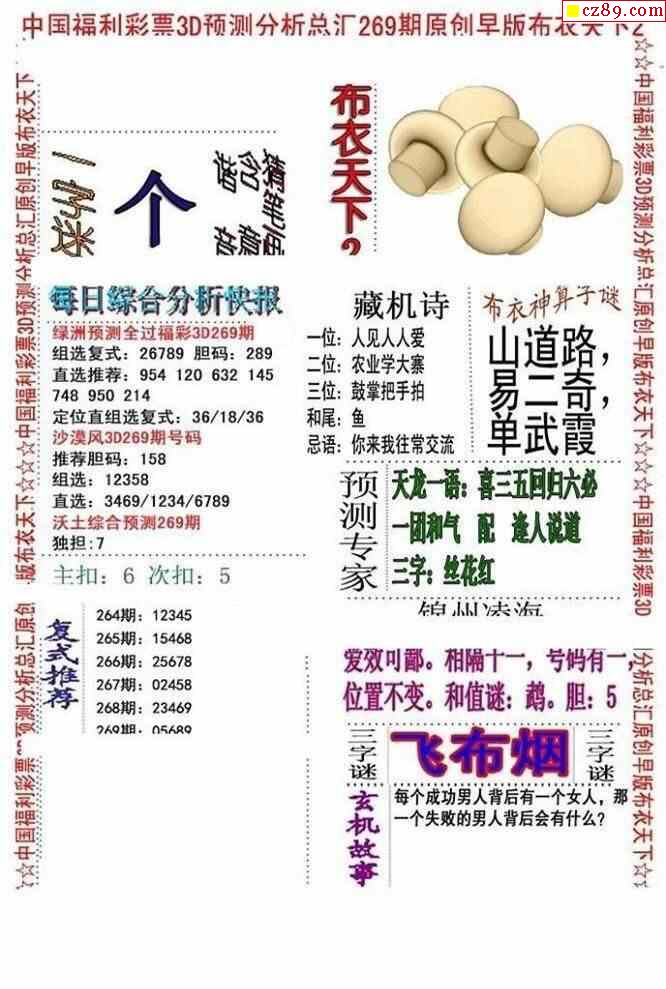 牛彩版3D字谜彩报图26年067期打印版