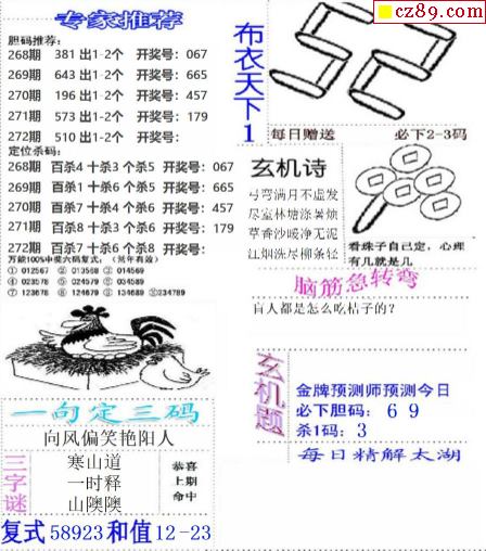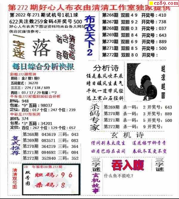 2023272期3d字谜图谜总汇