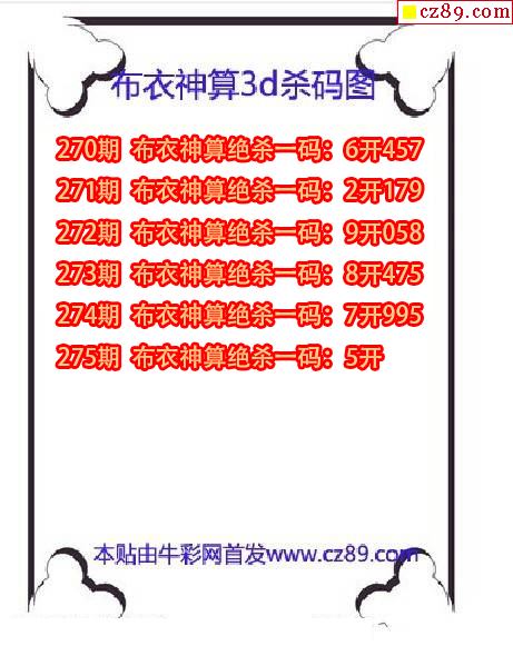 牛彩版3D预测彩报图25年331期打印版
