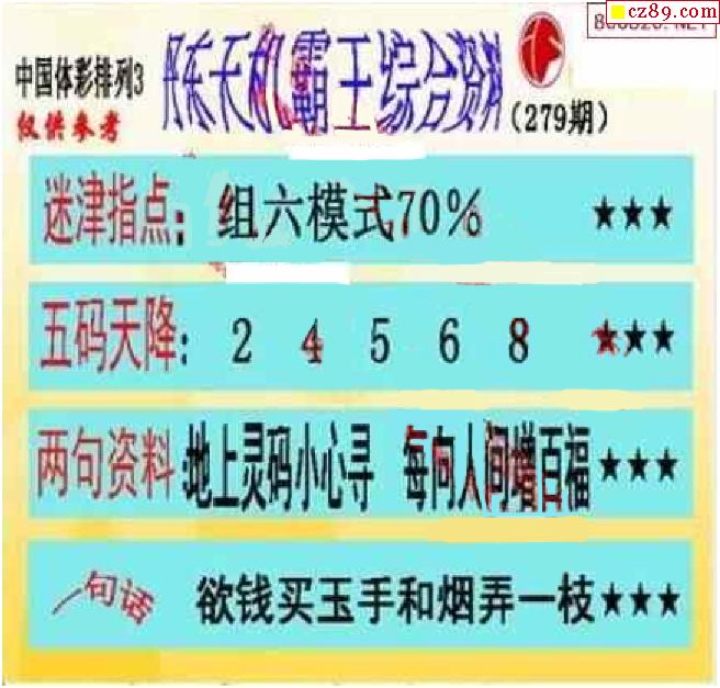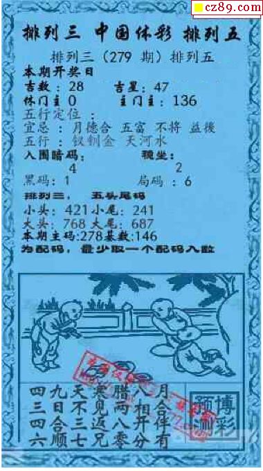 2023年279期牛彩网体彩P3画迷图谜汇总分享